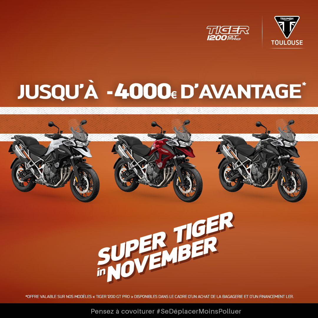 𝗟'𝗢𝗳𝗳𝗿𝗲 𝗦𝘂𝗽𝗲𝗿 𝗧𝗶𝗴𝗲𝗿 !In november, profitez chez 'Triumph Toulouse' de notre Offre Spéciale sur les Modèles 'Tiger 1200 GT Pro' avec :✅ Jusqu'à -4000 € d'Avantage.